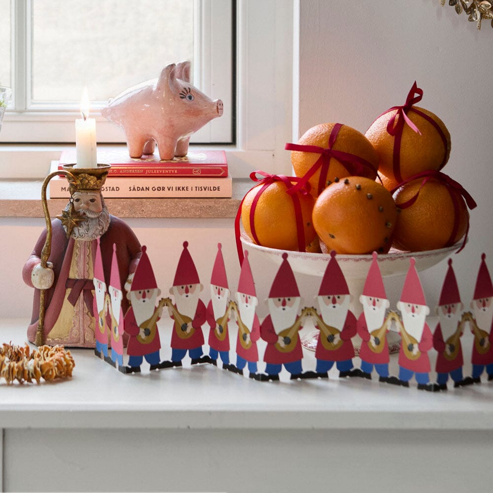 Die Tischgirlande WICHTEL der dänischen Interiormarke BUNGALOW macht sowohl am festlich gedeckten Tisch, als auch als Deko-Element in der Wohnung eine gute Figur! Die Girlande ist aus festem Papier gefertigt und mit feinen Details versehen. Die roten Wichtel lassen sich im Leporello-Stil ausklappen und überall platzieren.