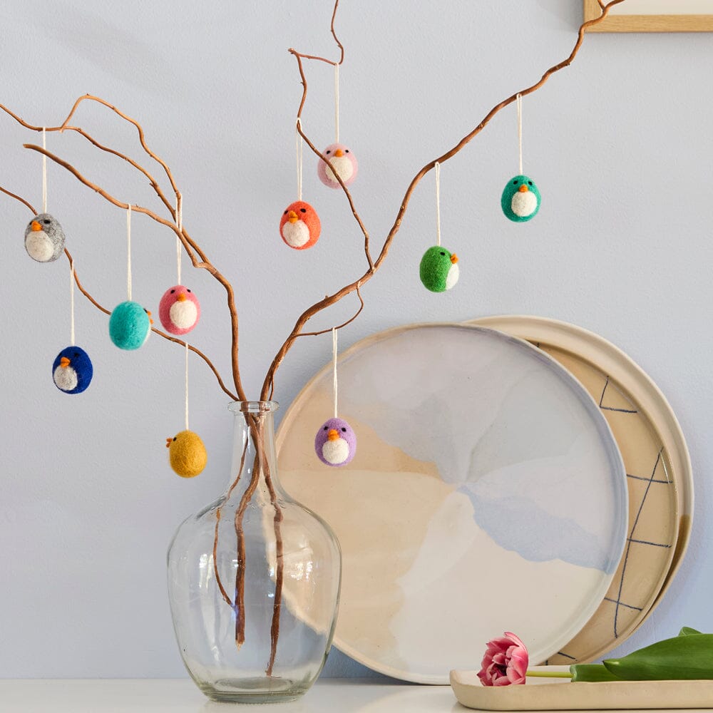 Mit den süßen Anhängern von AVEVA bringen wir Frühlingsstimmung ins Zuhause! Sie eignen sich ideal als natürliche Deko für Zweige oder den Osterstrauch. Die Produkte der schwedischen Marke werden aus nachhaltigem Wollfilz hergestellt und natürlich gefärbt.